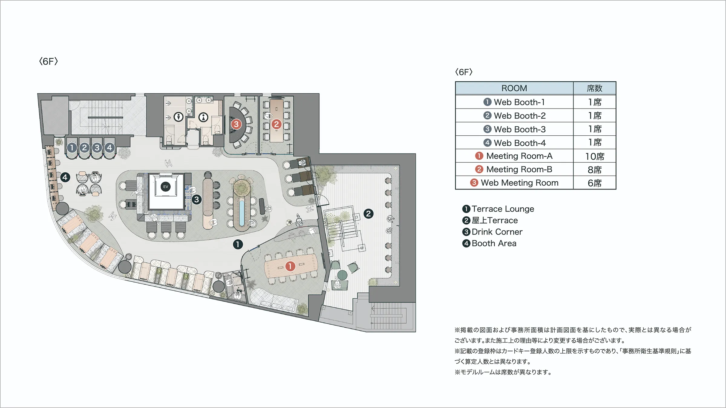 1~10名様以上などのご利用人数に合わせて広さを選べる完全個室プラン。共用部のラウンジや会議室なども利用可能。また、個室での法人登記が可能です。