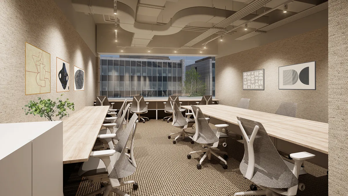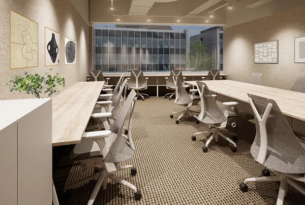 内装・家具・会議室・Webブースを備え、拠点開設や移転に適したプラン。洗練されたデザイン家具を備え、入居準備の手間や初期コストを削減しながら柔軟な働き方を実現できます。
