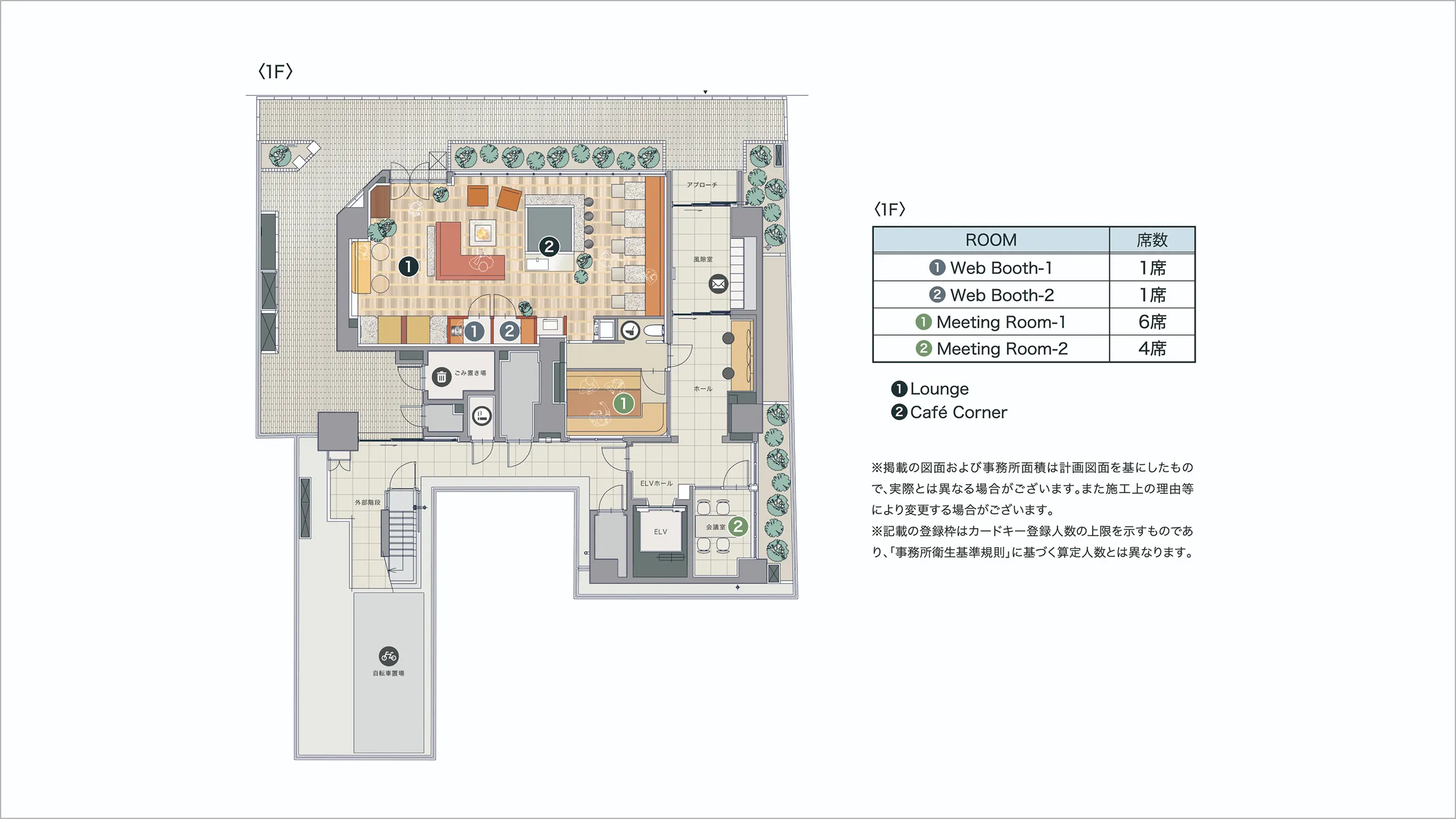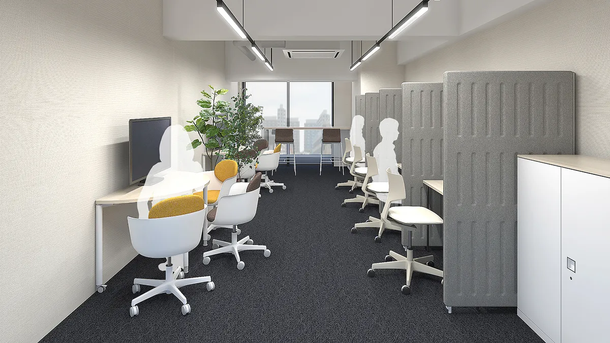 1~10名様以上などのご利用人数に合わせて広さを選べる完全個室プラン。共用部のラウンジや会議室なども利用可能。また、個室での法人登記が可能です。