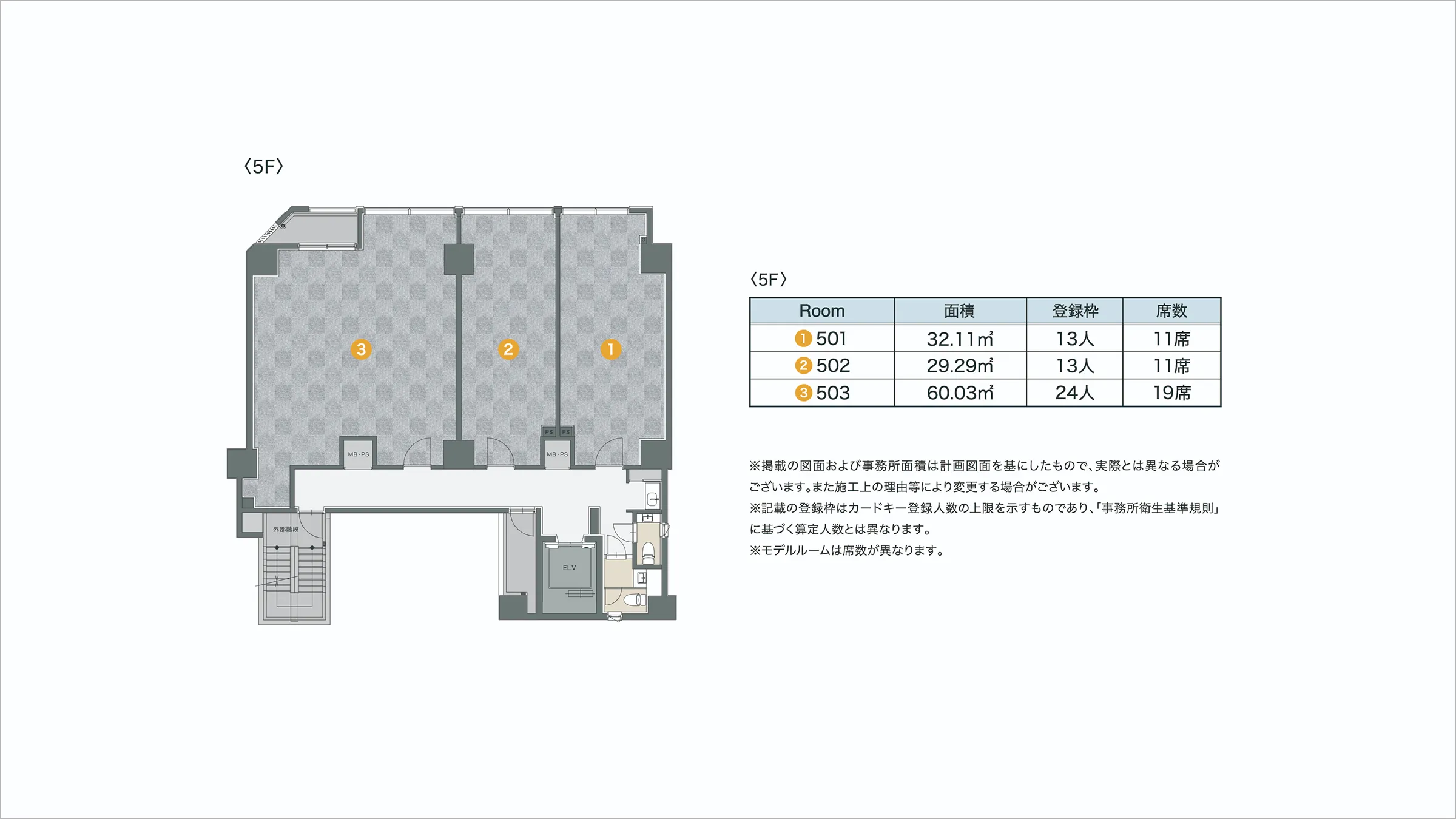 | 区画数 | 事務所15区画:29.29㎡~60.03㎡ |