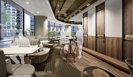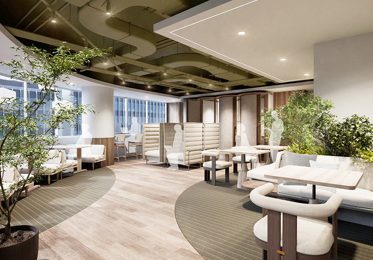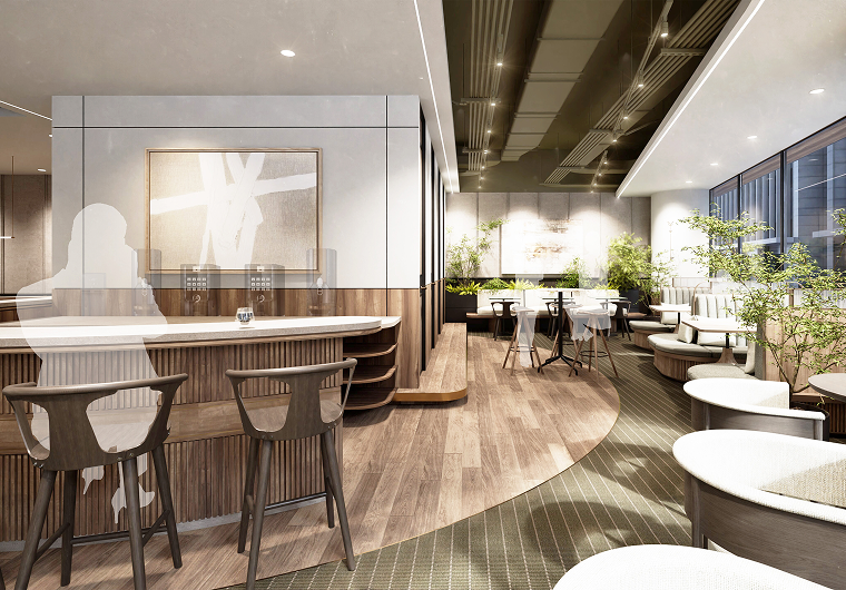 1階と6階に100席以上の多彩な座席を備えた上質なラウンジをご用意。1階にはゲスト招待に最適な迎賓空間を、6階には心地よくリフレッシュできるテラスを備え、気分や目的に合わせてお過ごしいただけます。ふとした会話や出会いから、オンラインでは得られない価値ある時間が広がります。
