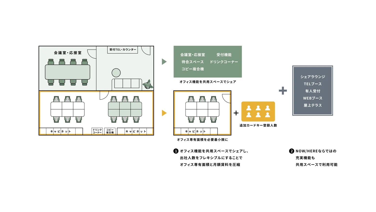 必要最小限のオフィス占有面積で柔軟に利用できます。